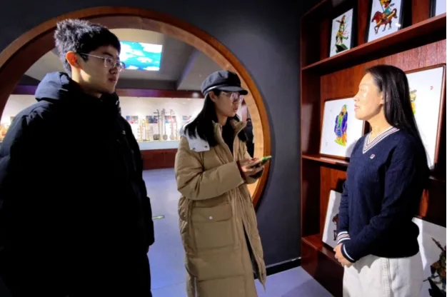 团队前往灵山满族乡观摩县第二届满族花灯节,感受满族民俗文化的独特魅力;在县群众文化艺术中心,实地探访望奎皮影戏非遗展区,与第五代皮影传承人关海英深入交流,详细了解传承人流派、技艺数字化转化难点、市场推广瓶颈等问题,结合高校专业优势,为皮影戏等非遗技艺的数字化保护、创新性发展提供思路参考,助力非遗文化在新时代焕发新活力。